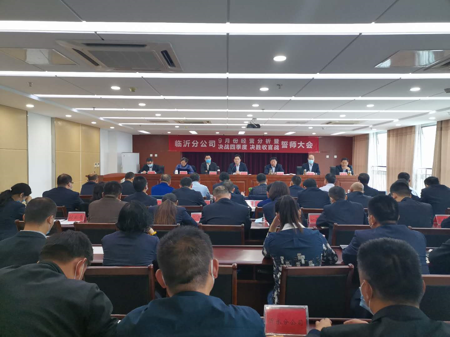 本網訊 10月13日,臨沂分公司召開9月經分會暨“決戰(zhàn)四季度 決勝收官戰(zhàn)”誓師大會,深入分析公司前三季度形勢,研究部署下一階段重點工作,進一步動員公司上下明確目標定位,堅定必勝信心,決戰(zhàn)四季度,決勝收官戰(zhàn),確保全面完成年度任務目標。